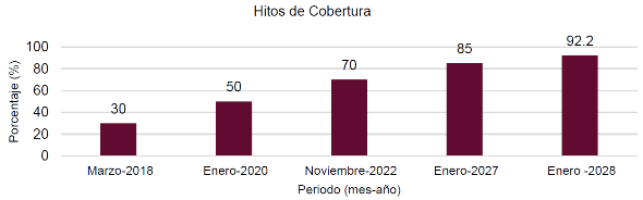 | Porcentaje de población cubierta | 30% | 50% | 70% | 85% | 92.2% |