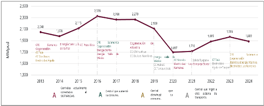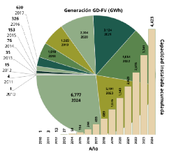2 Para el año 2024, se considera la capacidad instalada al cierre de 2024, es decir únicamente, la capacidad instalada en operación comercial.