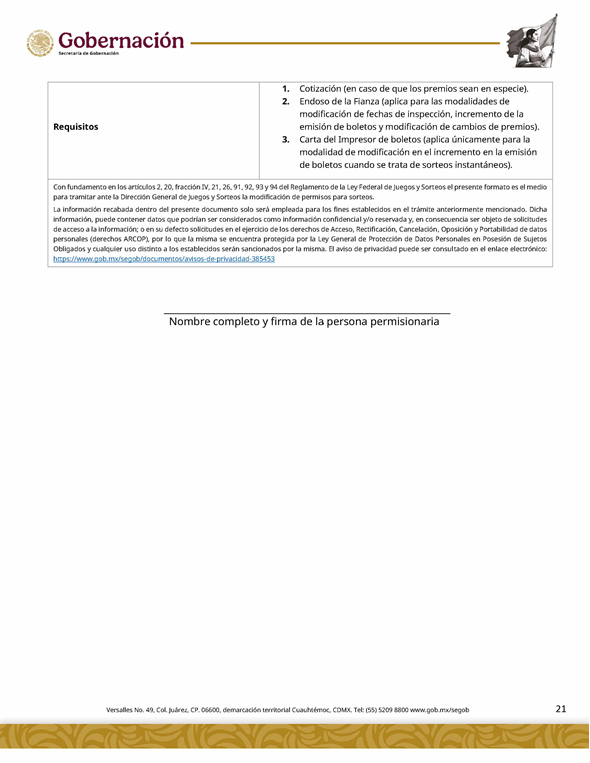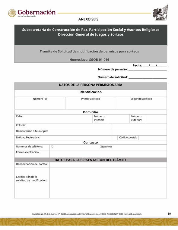 | 3 | SGOB-01-016-C | Solicitud de modificación de permisos de sorteos Modalidad: Modificación de los datos generales del permiso |