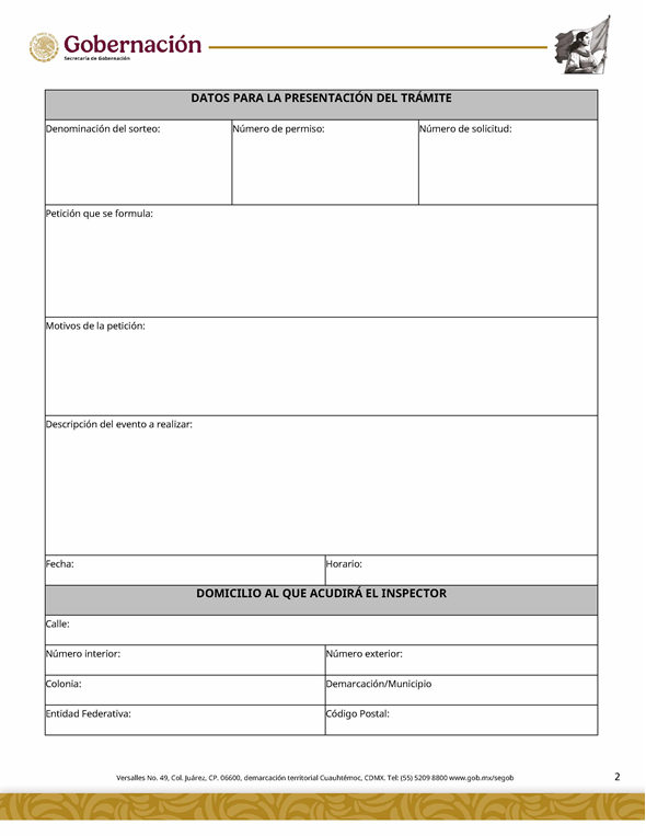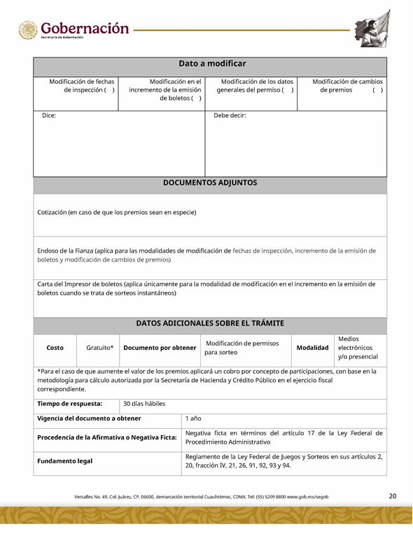 | 2 | SGOB-01-016-B | Solicitud de modificación de permisos de sorteos Modalidad: Modificación de cambios de premios |