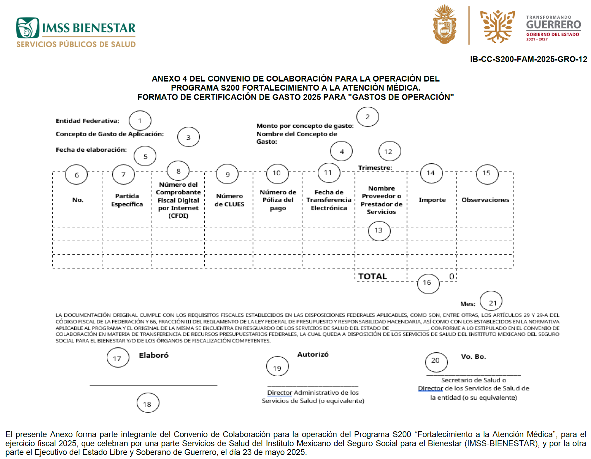 | 8 | Número de Folio Fiscal Digital por Internet (CFDI). | | 19 | Titular de la Dirección Administrativa de los Servicios de Salud (o equivalente). |