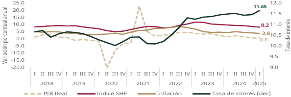 El sector vivienda es fundamental en la contribución económica a través de una derrama en diversas ramas industriales y la creación de empleo, que contribuyen al crecimiento y desarrollo del país. La política de vivienda 2025-2030, emitida por SEDATU, a través del Programa Nacional de Vivienda (PRONAVI) no solamente considera estos atributos inherentes al sector, los cuales son de suma importancia, sino que además se consideran otros desafíos de índole social; como el abatimiento al rezago habitacional y la inclusión financiera de los segmentos sociales menos favorecidos, así como el desarrollo sustentable de ciudades con ordenamiento territorial y certeza jurídica. En este sentido, resulta importante contar con un diagnóstico respecto a estos elementos que tienen un impacto estructural, permitiendo vislumbrar brechas sectoriales y sociales, así como los ejes de actuación en los cuales SHF puede contribuir, mitigando estas disparidades a través del fomento de oferta de vivienda, así como con esquemas de financiamiento bajo un enfoque social.