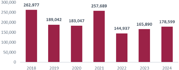 | 2018 | 2019 | 2020 | 2021 | 2022(13) | 2023 | 2024 |