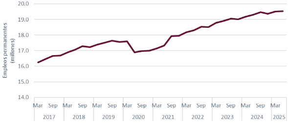 Para el caso de EUA, el FMI estima una baja en la tasa de crecimiento más pronunciada, pues pasaría de un aumento de 2.8% en 2024 a 1.8% en 2025 y 1.7% en 2026(1). En el panorama cercano, se visualizan todavía varias modificaciones en las tasas arancelarias con acuerdos bilaterales próximos, suspensiones y reactivaciones impositivas, y la revisión del T-MEC.