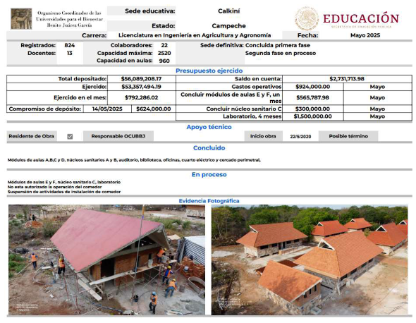 Dentro del Eje general 2. Desarrollo con bienestar y humanismo del PND 2025-2030 se plantea la "República educadora, humanista y científica", por lo que el OCUBBJG contribuirá al compromiso de generar 300 mil nuevos espacios para educación superior.