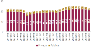 En un entorno global caracterizado por mayor incertidumbre y condiciones financieras más estrictas, el sector de infraestructura enfrenta retos importantes. A corto y mediano plazo, se observa una demanda creciente de infraestructura sostenible, eficiente y resiliente, impulsada por el crecimiento poblacional, la desigualdad social, la urbanización acelerada y la transición energética. Según proyecciones del Global Infrastructure Outlook del G20, el déficit global de infraestructura alcanzará 0.55% del PIB mundial (15 billones de dólares) hacia 2040, si no se incrementa sustancialmente la inversión, particularmente en regiones como América Latina, África Subsahariana y Asia Meridional(8). Esta brecha es una oportunidad para canalizar inversión hacia proyectos para el desarrollo económico, la sostenibilidad ambiental y la resiliencia climática.