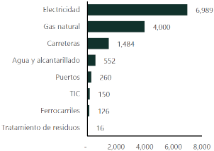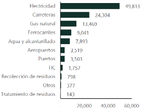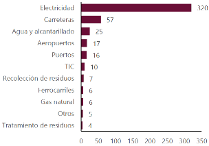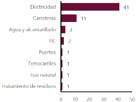 11 Se refiere a: aeropuertos, recolección y transporte de residuos, electricidad, tecnologías de la información y la comunicación, gas natural, puertos, ferrocarriles, carreteras, tratamiento y eliminación de residuos, agua y alcantarillado.