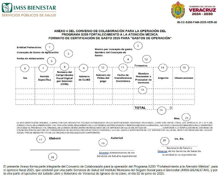 | 5 | Fecha de elaboración del certificado. | | 16 | Total del gasto efectuado por partida específica del trimestre que se reporta. |