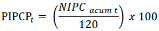 | Método de cálculo | donde: PIPCP t= Porcentaje acumulado de instituciones públicas capacitadas en igualdad, no discriminación y atención con enfoque diferenciado hasta el año t. NIPC acum t= Número acumulado de instituciones que han completado al menos tres cursos hasta el año t. 120 = Total de instituciones públicas programas a capacitar en el periodo de 6 años. t = Año de referencia. |