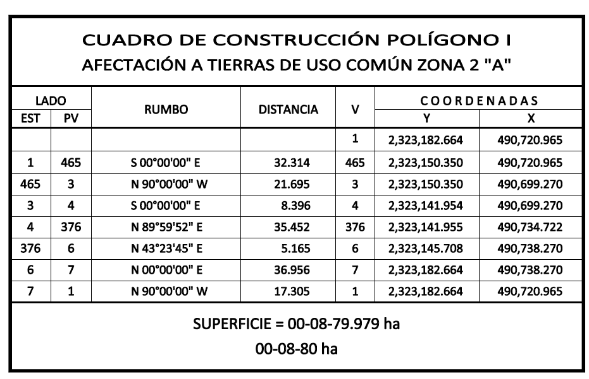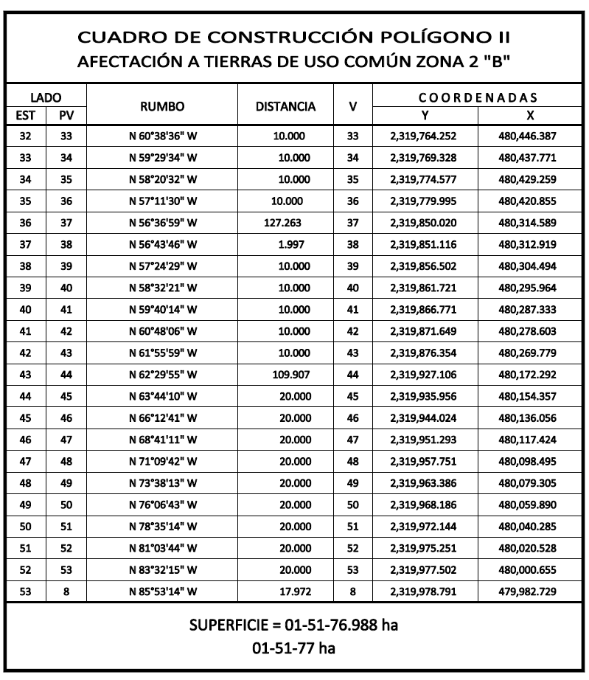 Superficie a expropiar de uso común: 01-60-57 hectáreas