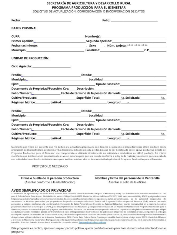 Anexo VII. Modelo de Formato para la Actualización o Corroboración de Datos e Incorporación al Padrón.