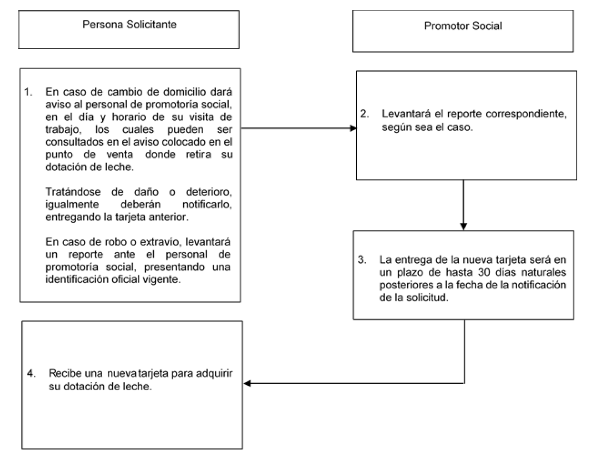 Anexo VI Flujograma para solicitar el cambio o reposición de la Tarjeta de Dotación de Leche para el Bienestar, S.A. de C.V.