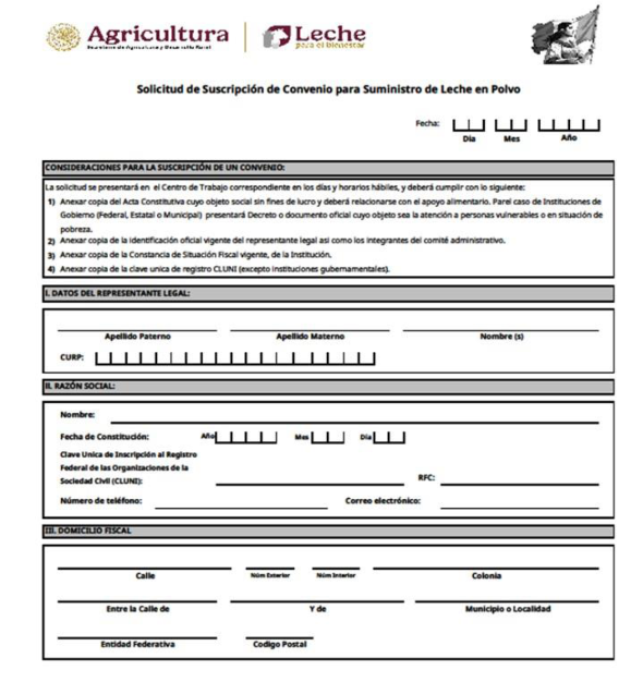 Anexo VII Solicitud de Suscripción de Convenio para Suministro de Leche en Polvo.