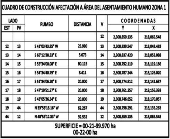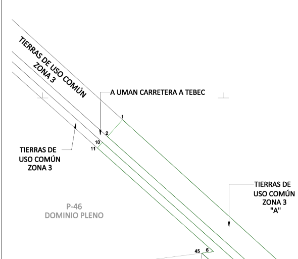 23. Que el comisionado técnico del RAN y el comisionado agrario de la Sedatu rindieron el "informe de comisión de Trabajos Técnicos e Informativos de Expropiación", de 24 de febrero de 2025, en el que señalan que la superficie real a expropiar al ejido "Tebec", municipio de Umán, estado de Yucatán, es de 01-07-61 hectáreas de temporal de uso común, que se describen en los siguientes planos y cuadros de construcción: