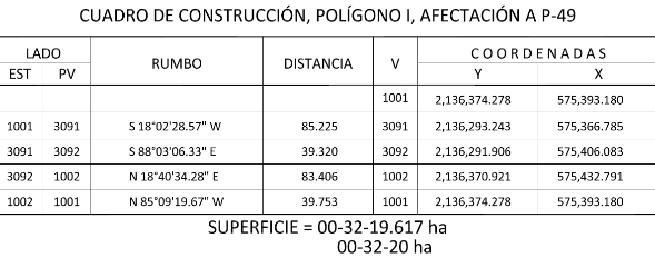 Superficie a expropiar de uso parcelado (individual): 00-32-20 hectáreas
