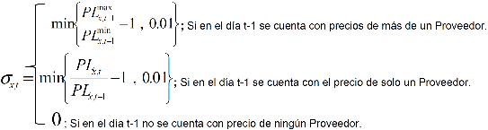 b) Si para el instrumento x en la fecha de valuación t se cuenta con información solo del i-ésimo Proveedor, el precio limpio de valuación que determinará el Banco de México para ese instrumento considerará al precio limpio de ese único Proveedor, modificado de acuerdo con la ecuación siguiente: