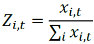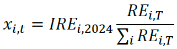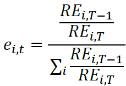 | | Índice del rezago educativo (valor relativo) en la entidad i más reciente publicada por el INEA al año t. |