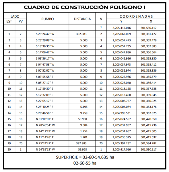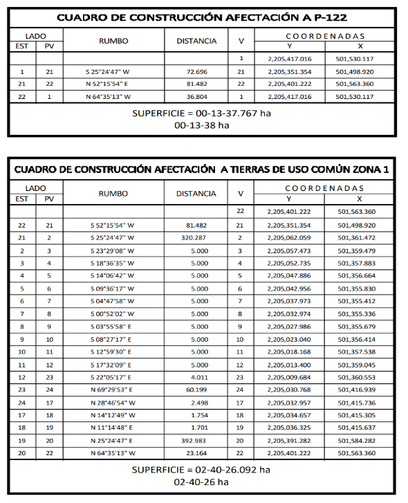 23. Que el comisionado técnico del RAN y el comisionado agrario de la Sedatu rindieron el "informe de comisión de Trabajos Técnicos e Informativos de Expropiación", de 16 de diciembre de 2024, en el que se señala que la superficie real a expropiar al ejido "Kobén", municipio de Campeche, estado de Campeche, es de 02-60-55 hectáreas de temporal de las cuales 02-47-17 hectáreas son de uso común y 00-13-38 hectáreas son de uso parcelado, que se describen en los siguientes planos y cuadros de construcción: