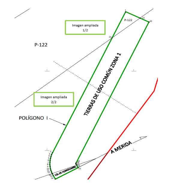 V. Que, de diversos documentos contenidos en el expediente de expropiación número DGOPR-DCE-DE/SOE-04CC/0106/FONATUR TREN MAYA, S.A. DE C.V. y TREN MAYA. S.A. DE C.V/2024, se advierte que la superficie que se solicitó expropiar al ejido "Kobén" fue de 02-60-84.29 hectáreas; sin embargo, una vez realizados los trabajos técnicos, resultó que la superficie real es de 02-60-55 hectáreas de terrenos de temporal de las cuales 02-47-17 hectáreas son de uso común y 00-13-38 hectáreas son de uso parcelado, como consta en el informe de comisión de Trabajos Técnicos e Informativos de Expropiación, de 16 de diciembre de 2024, motivo por el cual la superficie por expropiar al ejido "Kobén", municipio de Campeche, estado de Campeche, debe ser de 02-60-55 hectáreas;