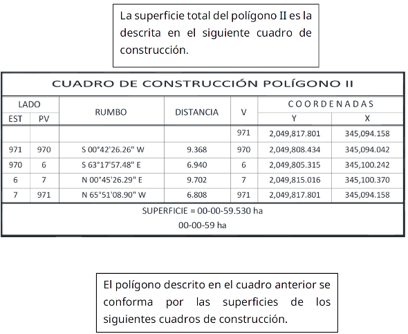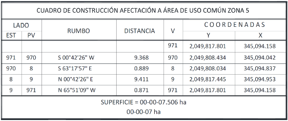 25. Que, la entonces Dirección General de Ordenamiento de la Propiedad Rural, hoy Dirección General de Resoluciones Presidenciales y Expropiaciones (DGRPE) de la Sedatu, el 15 de enero de 2025, emitió acuerdo de instauración del procedimiento de expropiación con número de expediente SEDATU/1S.3/DGOPR/DCE-DE/0009FONATUR TREN MAYA, S.A. DE C.V. Y TREN MAYA, S.A. DE C.V/2025; 26. Que el comisionado técnico del RAN y el comisionado agrario de la Sedatu rindieron el "informe de comisión de Trabajos Técnicos e Informativos de Expropiación", de 20 de febrero de 2025, en el que señalan que la superficie real a expropiar al ejido "Juan Sarabia", municipio de Othón P. Blanco, estado de Quintana Roo es de 00-07-40 hectáreas de terrenos de temporal de las cuales 00-00-59 hectáreas son de uso común y 00-06-81 hectáreas son de uso parcelado, que se describen en los siguientes planos y cuadros de construcción:
