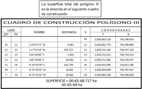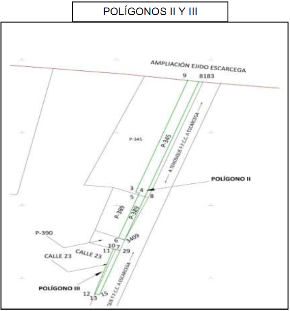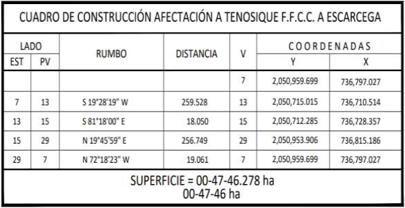 III. Que la superficie de 04-47-03 hectáreas, de las cuales 00-67-17 hectáreas son de uso común y 03-79-86 hectáreas son de uso parcelado, pertenecientes al ejido "NCPA. Div. del Norte y sus Anexos", municipio de Escárcega, estado de Campeche, se solicitó para destinarse a la construcción de obras de infraestructura ferroviaria, operación del Proyecto Tren Maya y sus obras complementarias. Como consecuencia, se acreditan las causas de utilidad pública del establecimiento, explotación o conservación de un servicio o función públicos, y de la construcción de puentes, carreteras, ferrocarriles y demás obras que faciliten el transporte, previstas en el artículo 93, fracciones I y VII, respectivamente, de la Ley Agraria;