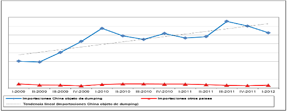 a. Las importaciones investigadas de China se efectuaron con un margen de dumping superior al considerado de minimis en el artículo 5.8 del Acuerdo Antidumping. Entre 2009 y el primer trimestre de 2012 dichas importaciones representaron hasta el 90% del total de las importaciones, un nivel muy superior a los de insignificancia, según el mismo artículo.