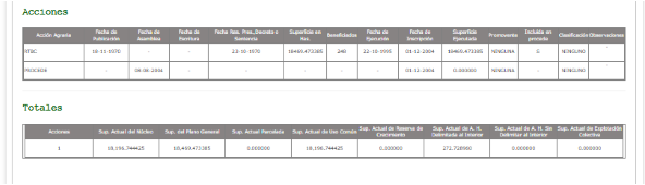 101. De igual forma, como un hecho notorio(56) en términos del artículo 88 del Código Federal de Procedimientos Civiles de aplicación supletoria en la materia de conformidad con los artículos 150 y 167 de la Ley Agraria, de una revisión efectuada en la página web oficial del Registro Agrario Nacional, referente al Padrón e Historial de Núcleos Agrarios (PHINA), este Órgano Jurisdiccional advierte que la comunidad de San Miguel del Carrizal cuenta actualmente con la superficie siguiente(57):