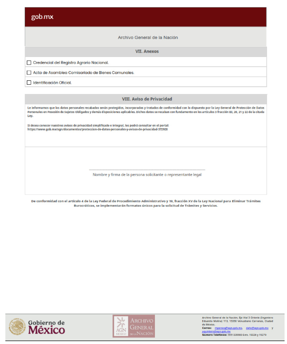 | 1 | AGN-2026-006 | Credencialización para personas usuarias del archivo histórico. | 1. Carta compromiso, original. |
