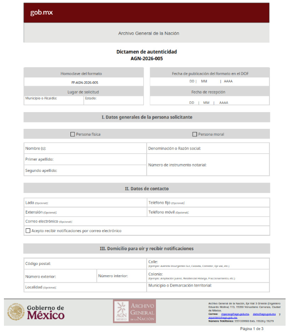 | 5 | Dictamen de autenticidad | AGN-00-005 | AGN-2026-005 |