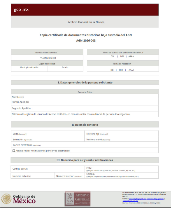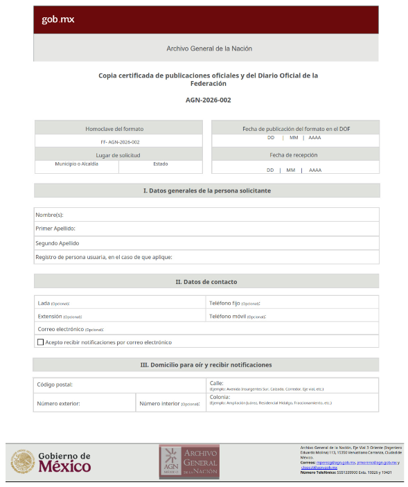 | 2 | Copia Certificada de publicaciones oficiales y del Diario Oficial | Sin homoclave | AGN-2026-002 |
