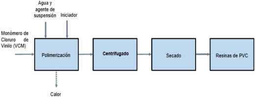 3. El producto objeto de investigación es el homopolímero de monómero de cloruro de vinilo obtenido por el proceso de polimerización en suspensión, comúnmente conocido como PVC suspensión, resina de PVC suspensión o simplemente PVC. Consiste en una resina termoplástica constituida por la repetición de unidades químicas que corresponde al monómero de cloruro de vinilo (VCM), insumo utilizado para la fabricación de PVC. El PVC es un polímero cuya cadena está formada por la repetición de unidades de cloruro de vinilo.