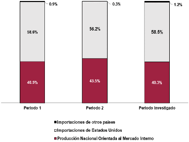 a. Las importaciones del producto objeto de investigación se efectuaron con un margen de discriminación de precios de 0.6315 dólares por kilogramo. En el periodo investigado, las importaciones originarias de los Estados Unidos representaron el 98% de las importaciones totales.