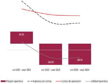 ii. Si bien, la pérdida operativa disminuyó 4% en el periodo investigado, en el periodo analizado el resultado operativo cayó 194%.