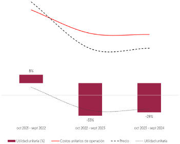 iii. El margen operativo disminuyó 44.4 puntos porcentuales en el periodo analizado, al pasar de 16.3% en el periodo 1 a -28.1% en el periodo investigado.