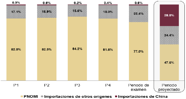 b. No obstante que, en el periodo analizado, la aplicación de la cuota compensatoria desincentivó el volumen de importaciones de cables de acero originarias de China, las proyecciones de estas importaciones confirman la probabilidad fundada de que, ante la eliminación de la cuota compensatoria, estas concurrirían nuevamente al mercado nacional en volúmenes considerables, que desplazarían a la producción nacional y alcanzarían una participación considerable de mercado.