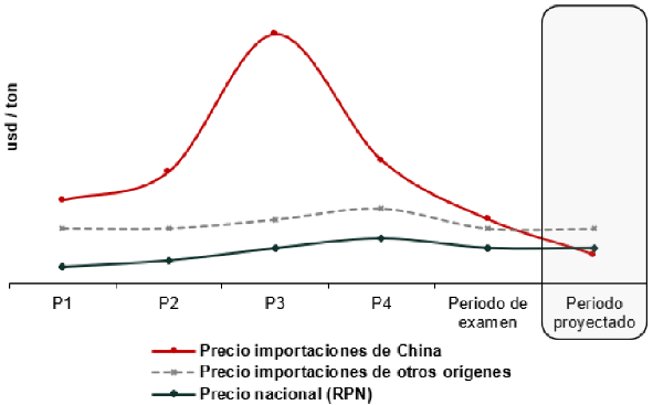 g. China enfrenta restricciones comerciales en diversos países por medidas de remedio comercial en mercados relevantes, lo cual permite presumir que podría reorientar parte de sus exportaciones de cables de acero hacia mercados más abiertos como el mercado nacional.