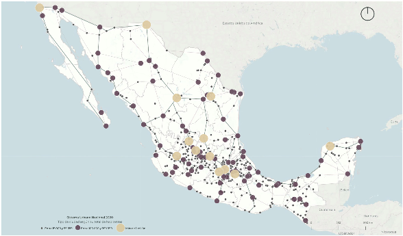 Nota: El mapa visibiliza la configuración policéntrica del SUN a partir del tamaño poblacional de las ciudades y su articulación territorial mediante redes de conexión urbana. Destaca la centralidad de 13 grandes ciudades con más de un millón de habitantes, así como la densa red de ciudades intermedias y pequeñas, que cumplen funciones nodales en corredores regionales, zonas fronterizas, litorales y ejes transversales. Sin embargo, la articulación funcional entre ciudades sigue siendo desigual: hay regiones del sur y sureste con menor conectividad física y económica, lo que profundiza asimetrías históricas en el acceso a servicios, inversión e integración productiva. Esta distribución debe ser reinterpretada como una oportunidad estratégica para fomentar esquemas de desarrollo regional equilibrado, planificación intermunicipal, movilidad sostenible y sistemas urbanos rurales articulados.
