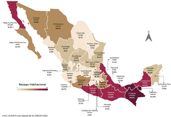 Mapa 09. Rezago habitacional por entidad federativa en México (2022)