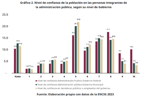 Instituto Nacional de Estadística y Geografía [INEGI]. (2024, Marzo 20). Encuesta Nacional de Calidad e Impacto Gubernamental. INEGI. https://www.inegi.org.mx/contenidos/programas/encig/2023/doc/encig2023_principales_resultados.pdf