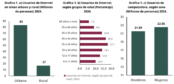 1 En el Programa Sectorial de la ATDT, estos indicadores se presentan como una medición de la falta de dicho acceso a servicios de internet y telecomunicaciones. En este sentido, la ATDT destaca que, persiste una brecha estructural del 38.4% en cobertura entre zonas urbanas y rurales: mientras el 99.72% de la población urbana cuenta con servicios, en áreas rurales sólo alcanza el 61.32%, y se reduce al 46.37% en comunidades con alta presencia indígena. Además, el 20.4% de los hogares indígenas no dispone de teléfono celular y el 64.4% carece de conexión a internet, lo que equivale a más de 20 millones de personas sin acceso en el país (ENDUTIH, 2024) [Programa Sectorial ATDT, 2025).