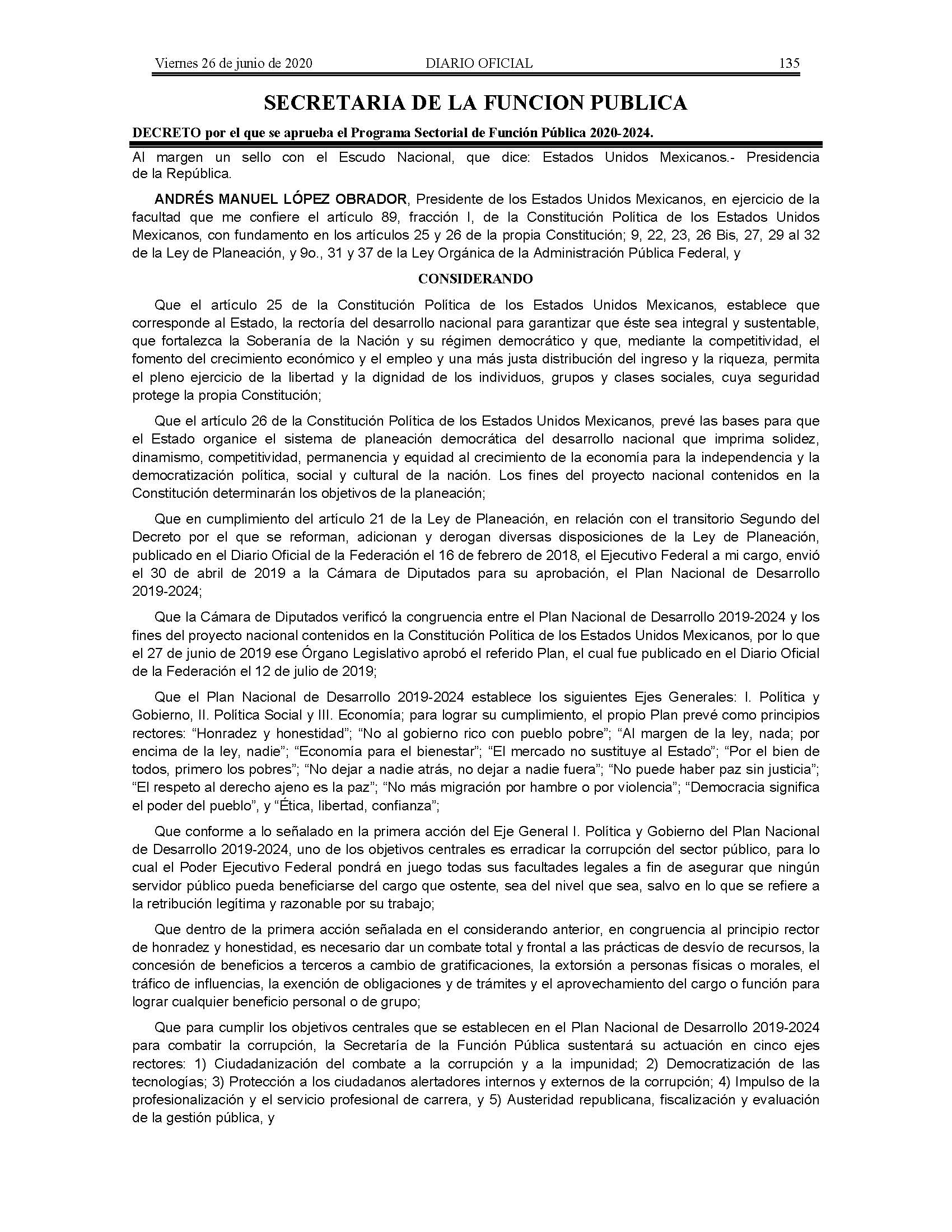 Decreto por el que se aprueba el Programa Sectorial de Función Pública 2020-2024.
