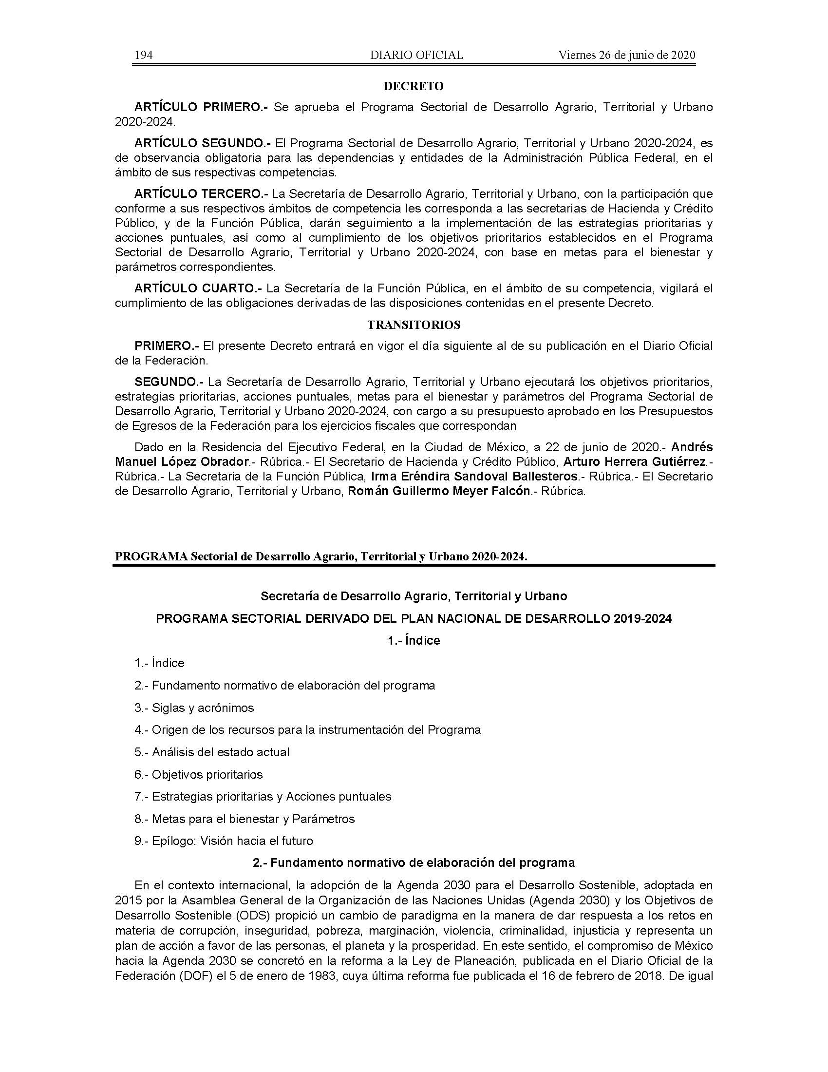 Programa Sectorial de Desarrollo Agrario, Territorial y Urbano 2020-2024.