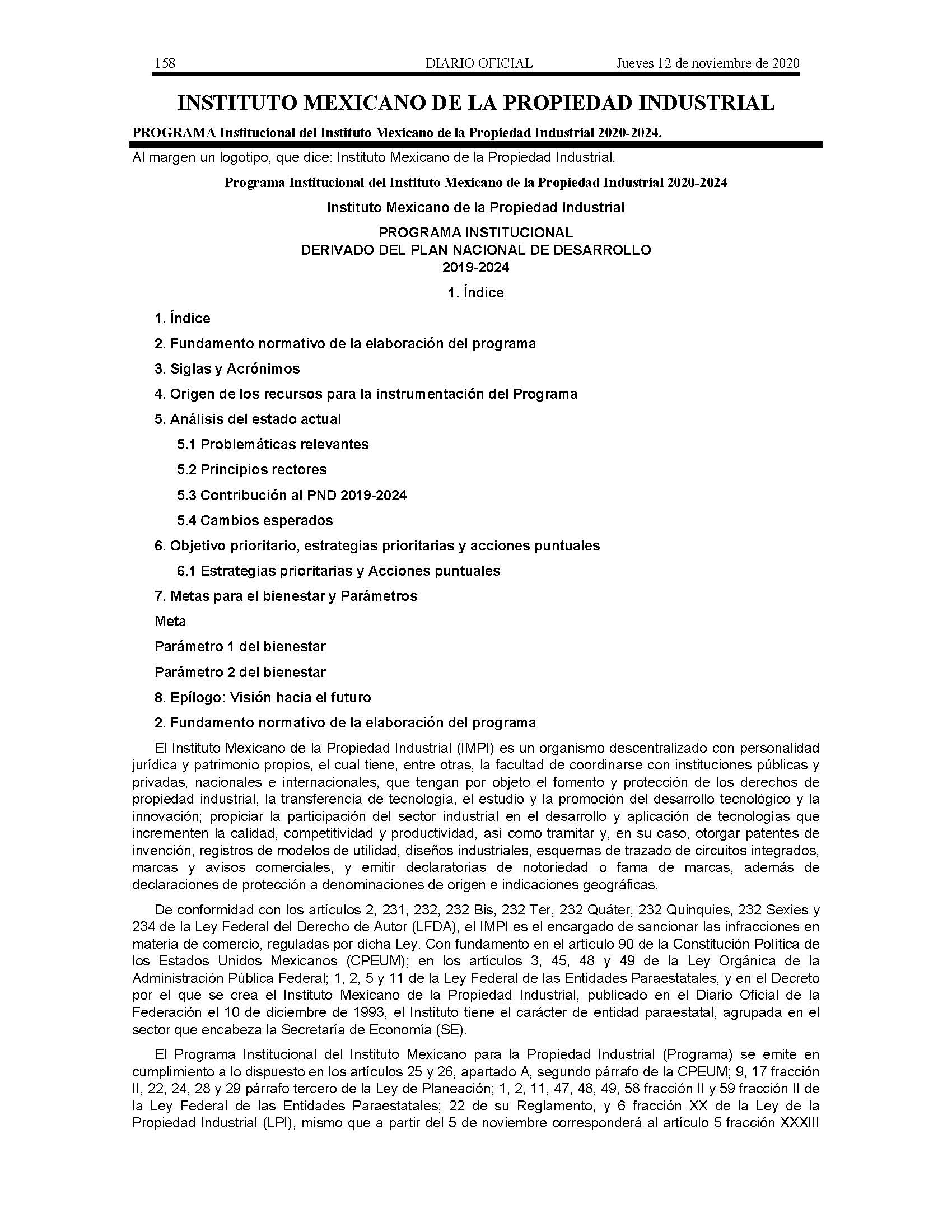 Programa Institucional del Instituto Mexicano de la Propiedad Industrial 2020-2024.