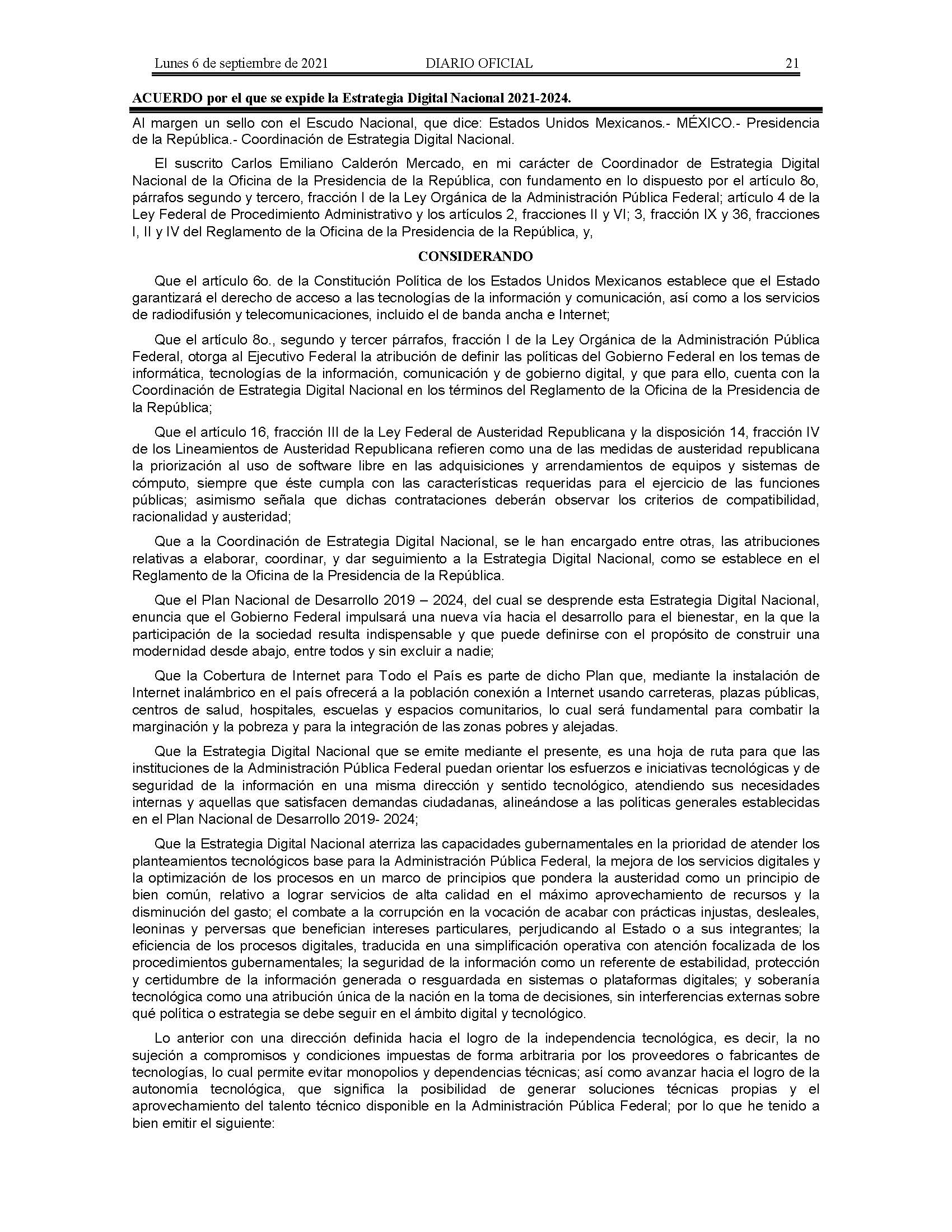 Acuerdo por el que se expide la Estrategia Digital Nacional 2021- 2024.